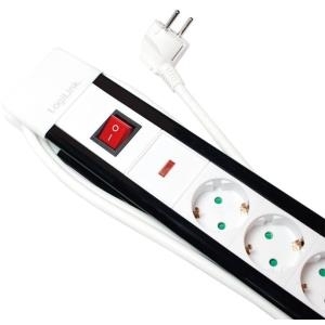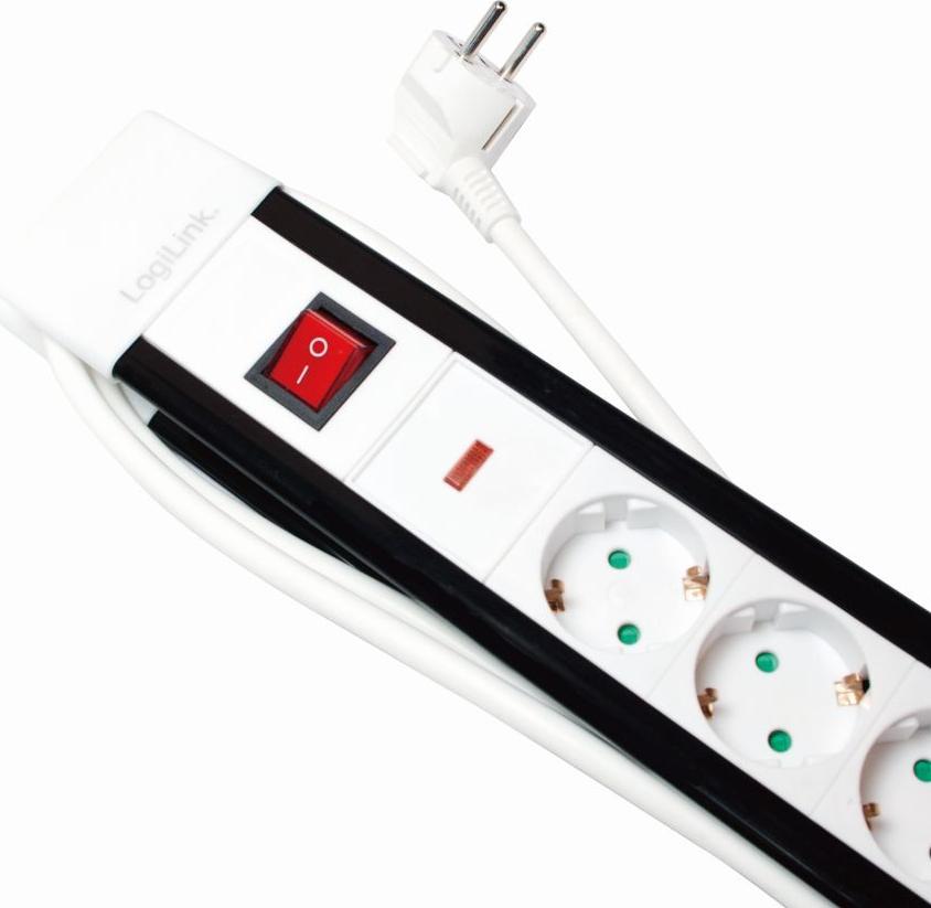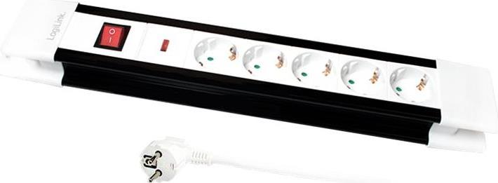 Steckdosenleiste mit 5 Schutzkontaktbuchsen von LogiLink. Beleuchteter Ein- und Ausschalter. Schutzkontaktbuchsen mit Kindersicherung.