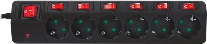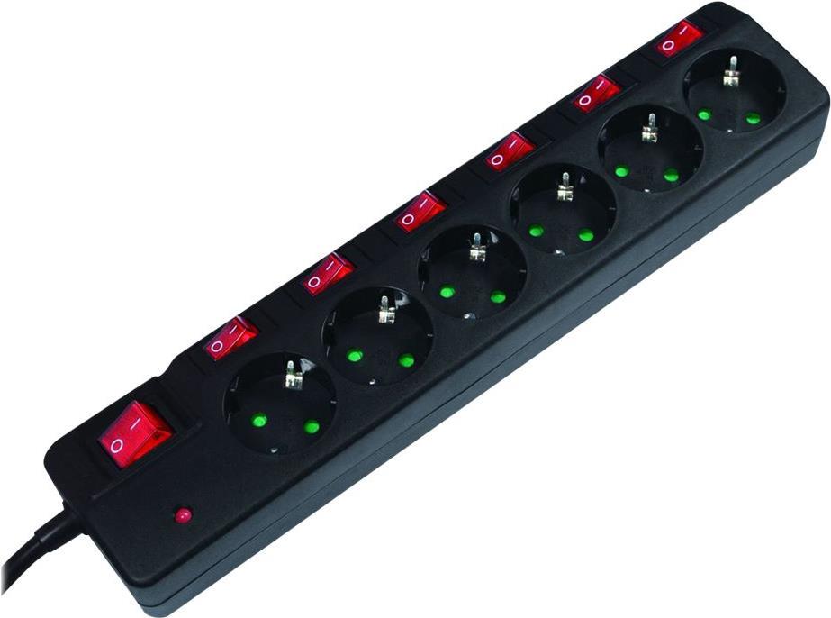 LogiLink's 6-fach Steckdosenleiste bietet Platz, um gleichzeitig bis zu sechs elektrische Verbraucher anzuschließen. Jede Steckdose ist einzeln schaltbar, da jede Buchse über einen eigenen beleuchtetet Ein-/Ausschalter verfügt. Zudem gibt es einen extra Schalter, der die komplette Steckdosenleiste schaltet. Die Buchsen verfügen über eine Kindersicherung.