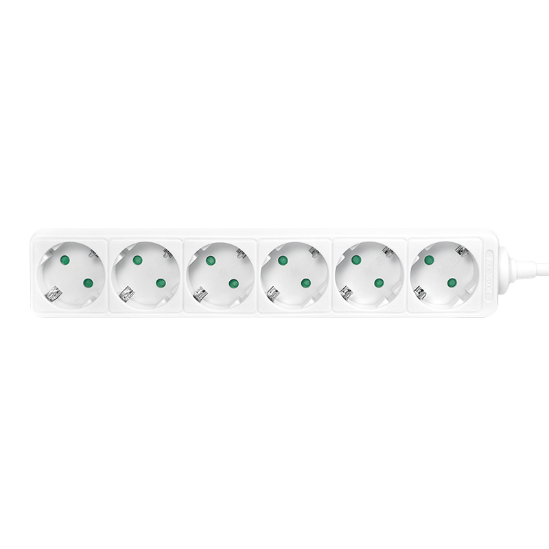 Steckdosenleiste mit 6 Schutzkontaktbuchsen von LogiLink. Buchsen mit Kindersicherung.