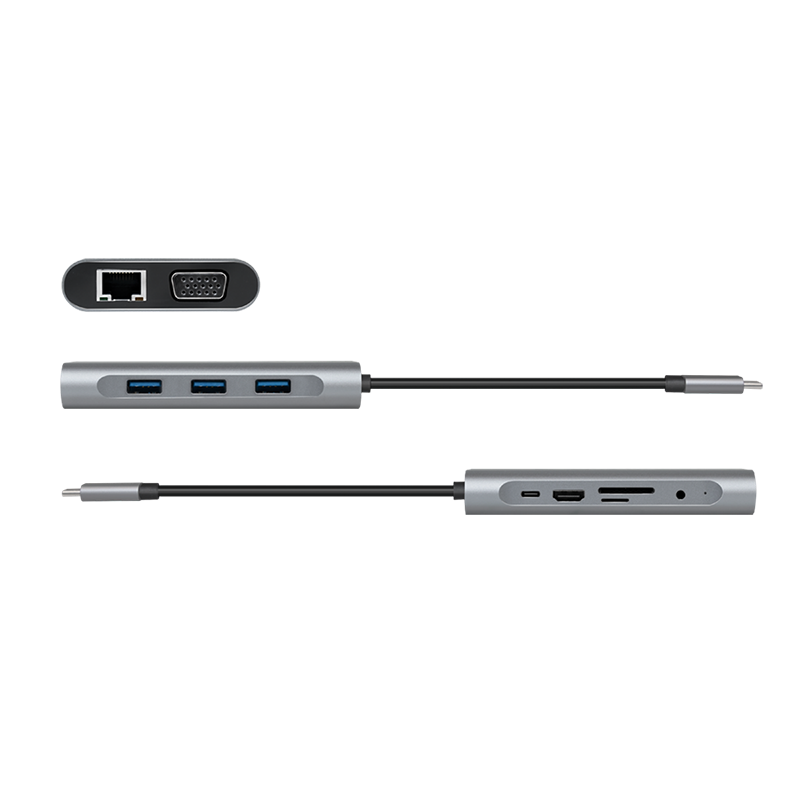 Diese USB-C-Dockingstation ist ein tragbares und leichtes 10-in-1-Erweiterungsdock; schließen Sie einfach Projektoren, 4K-Monitore, SD-Karten, Headsets und USB-Flash-Laufwerke an Ihren USB-C-Laptop an. Der zusätzliche USB-C-PD-Anschluss sorgt dafür, dass Ihr Laptop aufgeladen wird, während er gleichzeitig jedes externe Gerät mit Strom versorgt. Ideal, um Ihre Arbeitseffizienz zu steigern und das Leben einfacher zu machen.