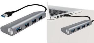 Ermöglicht den Anschluss eines Laptops mit Kartenleser über den USB 3.0-Anschluss und bietet zusätzliche 3 USB-Anschlüsse und einen Kartenleser für die Verbindung mit anderen USB-Geräten.