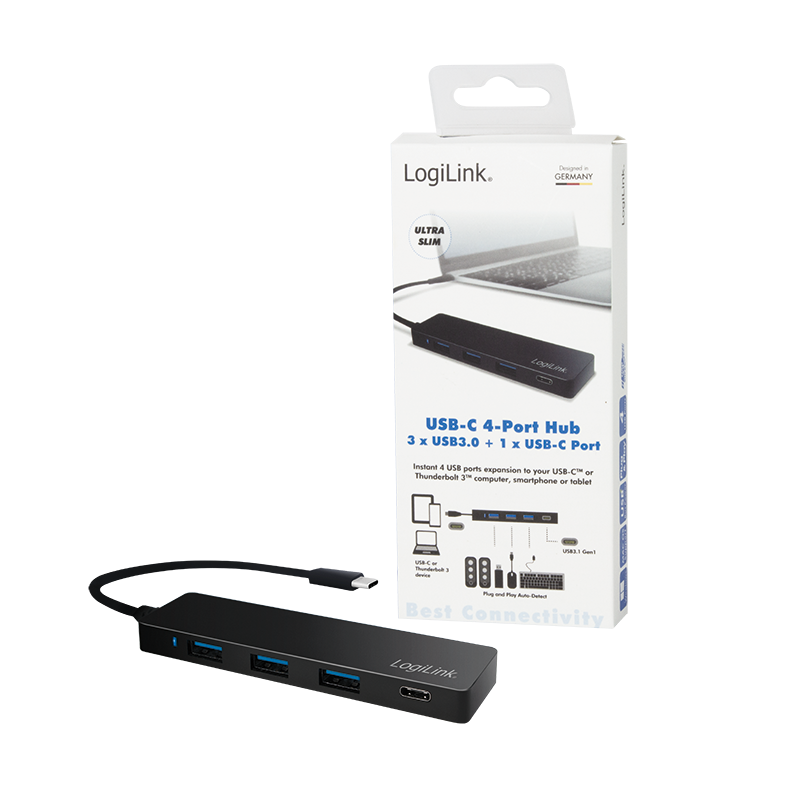 | Produktbeschreibung | LogiLink Ultra-slim USB-C 3.1 hub - Hub - 4 Anschlüsse |