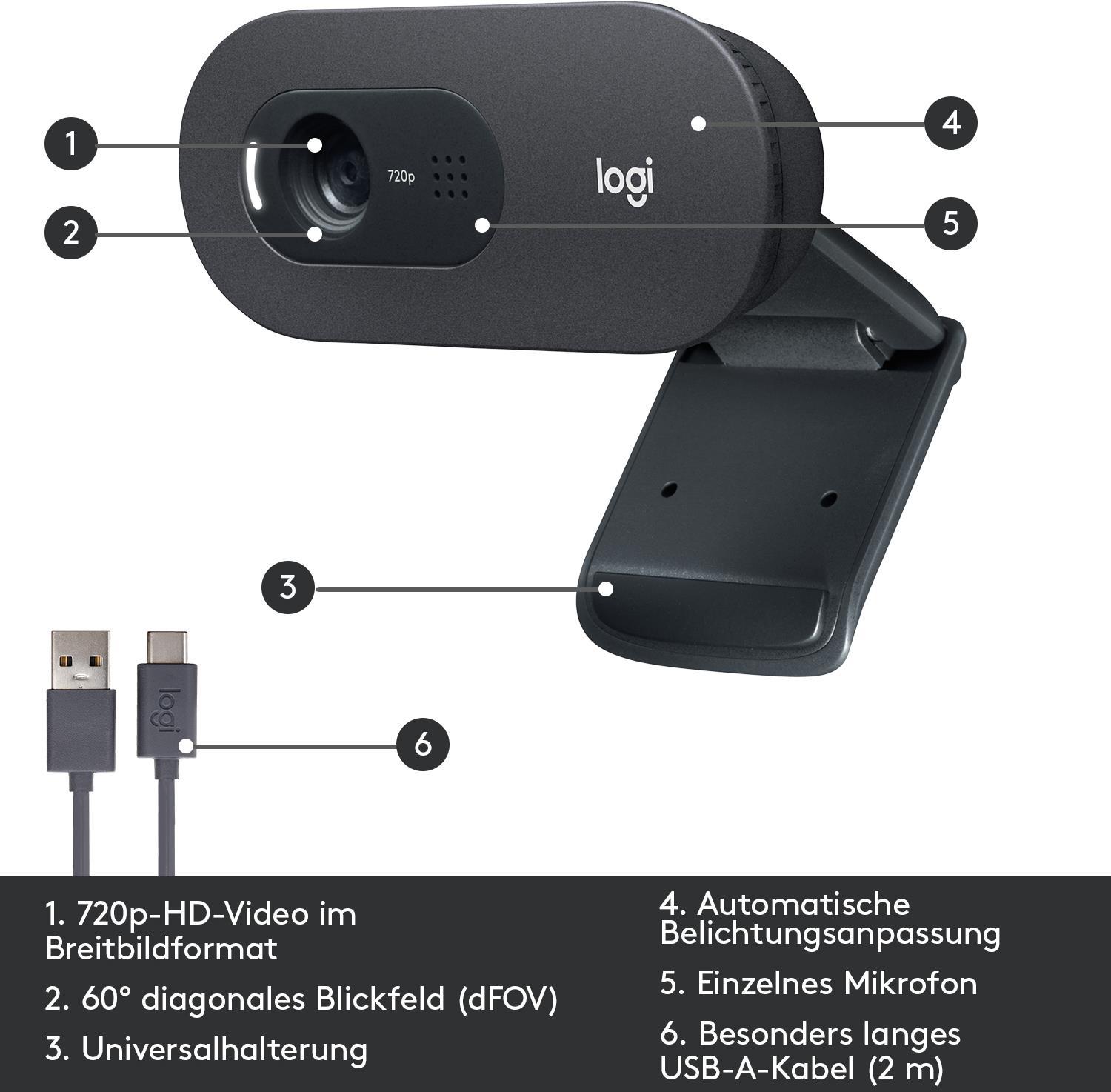 Logitech C505 - Web-Kamera - Farbe - 720p - feste Brennweite - Audio - USB