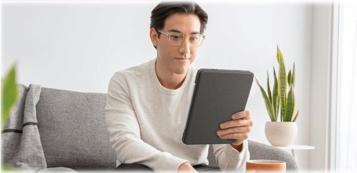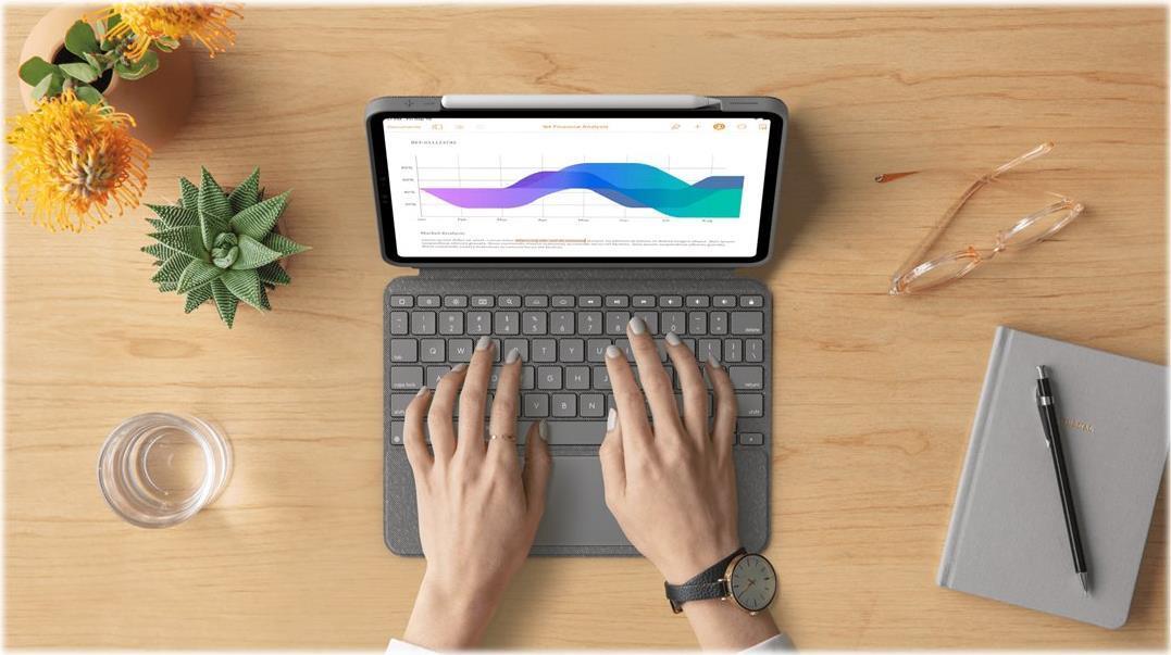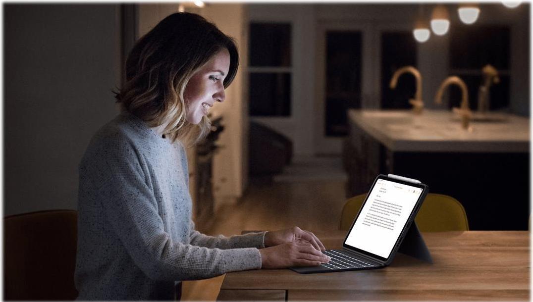 Zugriff auf Anschlüsse und Bedienelemente, verstärkte Ecken, automatische Schlaf-/Weckfunktion, Apple Stifthalter, 20°-60° adjustable angles, backlit auto-adjusting |