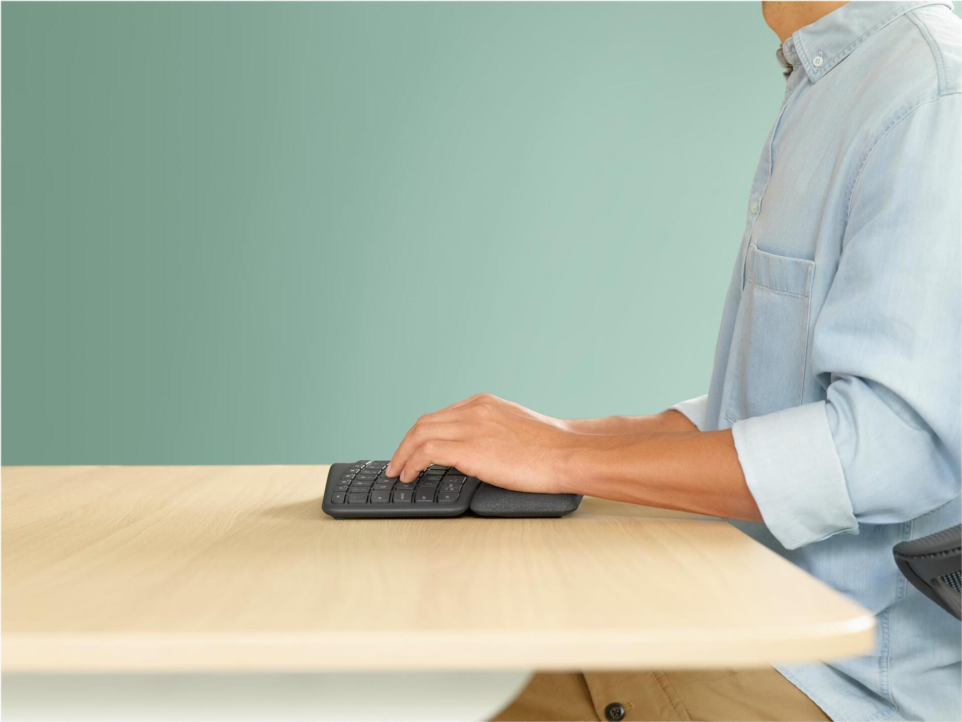Wir präsentieren: ERGO K860, eine geteilte ergonomische Tastatur, speziell entwickelt für eine bessere Haltung, weniger Muskelanspannung und mehr Unterstützung. Tippen Sie ergonomischer auf einer geteilten Tastatur mit geschwungener Form, die zu einer besseren Haltung beiträgt.