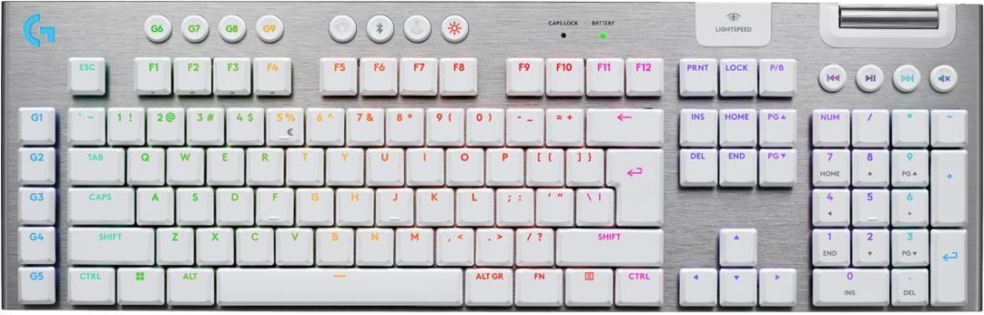 Logitech G G915 X - Tastatur - LIGHTSPEED - Hintergrundbeleuchtung - kabellos - Bluetooth 5,0, 2,4 GHz, USB - QWERTY - US International - Tastenschalter: GL Tactile - weiß (920-012690)
