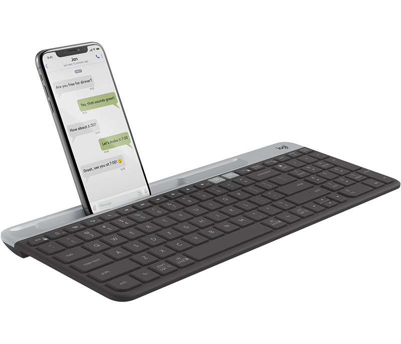 Die K580 Slim Multi-Device ist eine ultradünne, designorientierte Tastatur, die sich perfekt eignet, um Ihre Ideen am Computer einzutippen und dann einen Text auf Ihrem Smartphone zu schreiben.