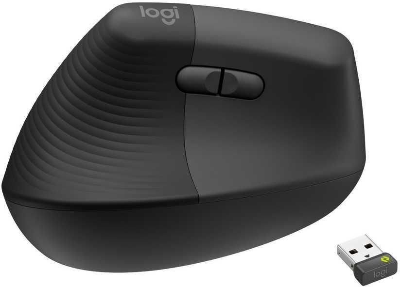 Logitech Lift Vertical Ergonomic Mouse - Vertikale Maus - ergonomisch - Für Linkshänder - optisch - 6 Tasten - kabellos - Bluetooth, 2,4 GHz - Logitech Logi Bolt USB-Receiver - Graphite (910-006474)