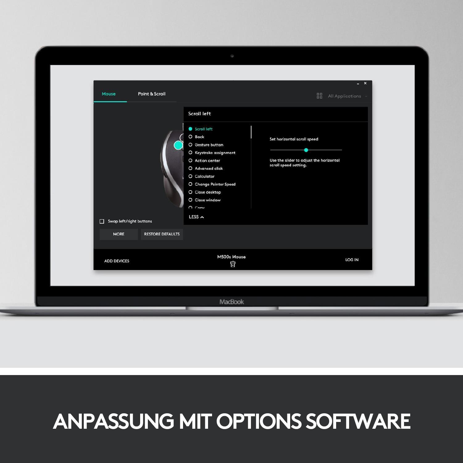 M500s eröffnet Ihnen neue Dimensionen bei Ihrer Arbeit mit hyperschnellem Scrollen und sieben konfigurierbaren Tasten. Das perfekt geschwungene Design in Standardgröße vereint Komfort und Präzision für intelligenteres, schnelleres Arbeiten.