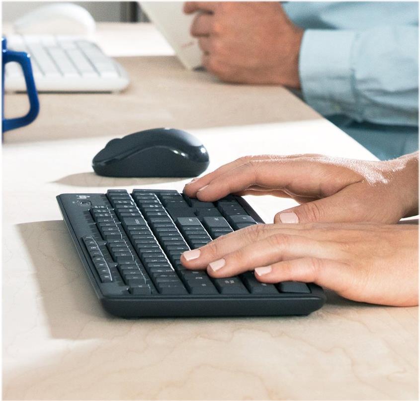 Arbeiten Sie konzentriert und ablenkungsfrei. Wir präsentieren die Logitech MK295 Silent Wireless Combo mit SilentTouch – eine exklusive Logitech Technologie, die über 90 % der Tastatur- und Mausgeräusche eliminiert. Damit arbeiten Sie ganz wie mit der weltweit meistverkauften Combo, aber ohne störende Klick- und Tippgeräusche.