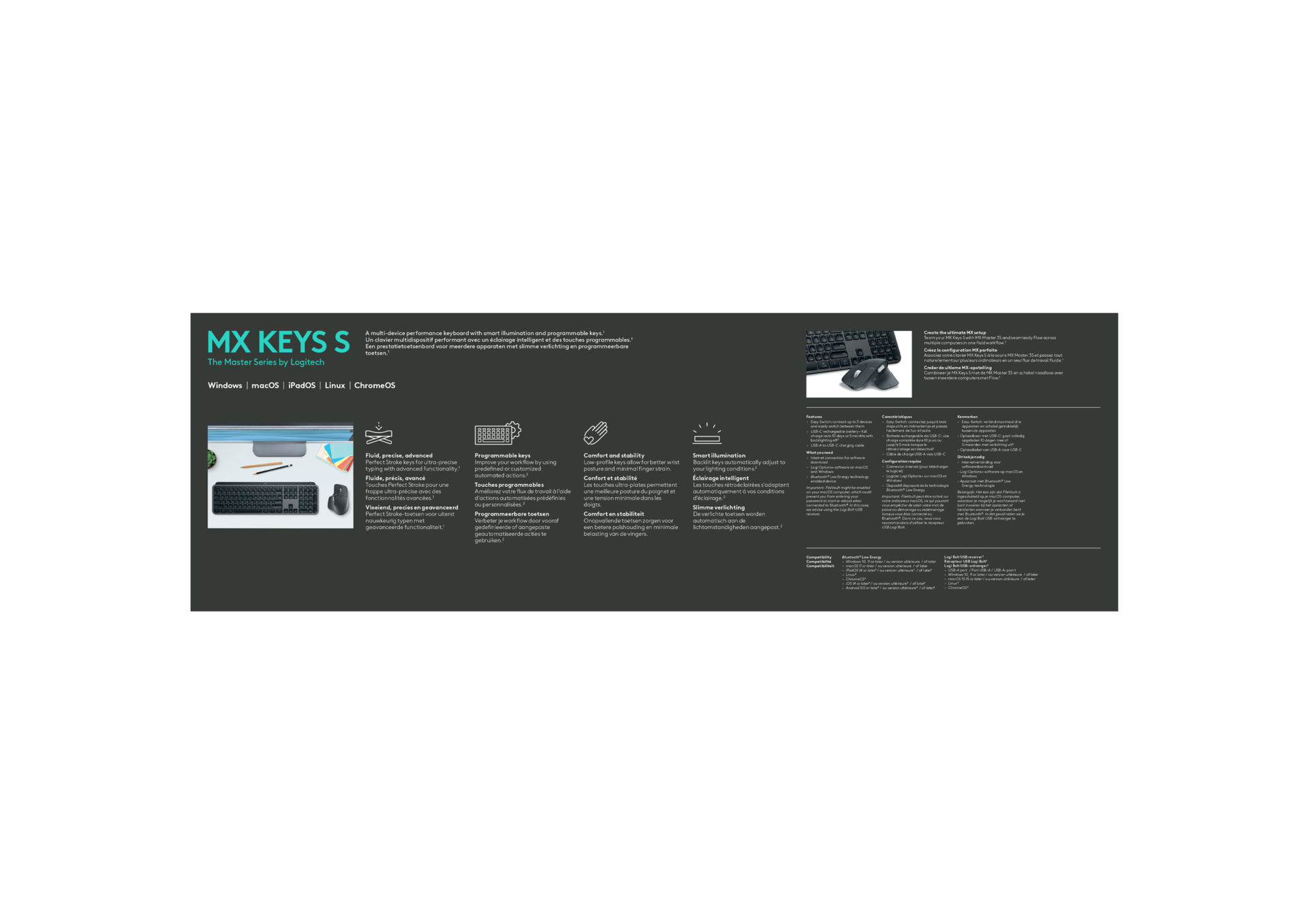 Erleben Sie mit MX Keys S eine neue Ebene des Flow-Zustands. Hochleistungstastaturen, entwickelt für komfortables, schnelles und flüssiges Tippen, mit intelligenter Beleuchtung und programmierbaren Tasten.
