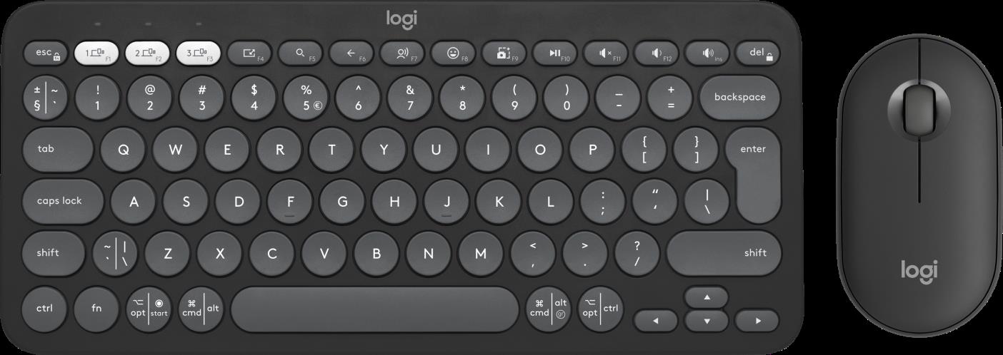 Logitech Pebble 2 Combo - Tastatur-und-Maus-Set - kabellos - Bluetooth LE - QWERTY - US International - Tonal Graphite (920-012239)