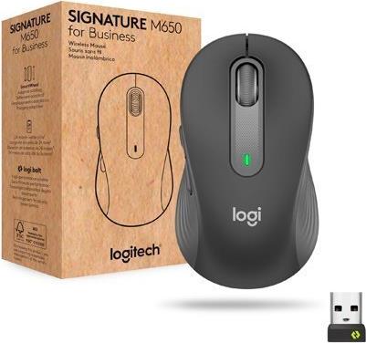 Logitech Signature M650 Large - Maus - Größe L - optisch - 5 Tasten - kabellos - 2,4 GHz, Bluetooth - Logitech Logi Bolt USB-Receiver - Graphite (910-006236)