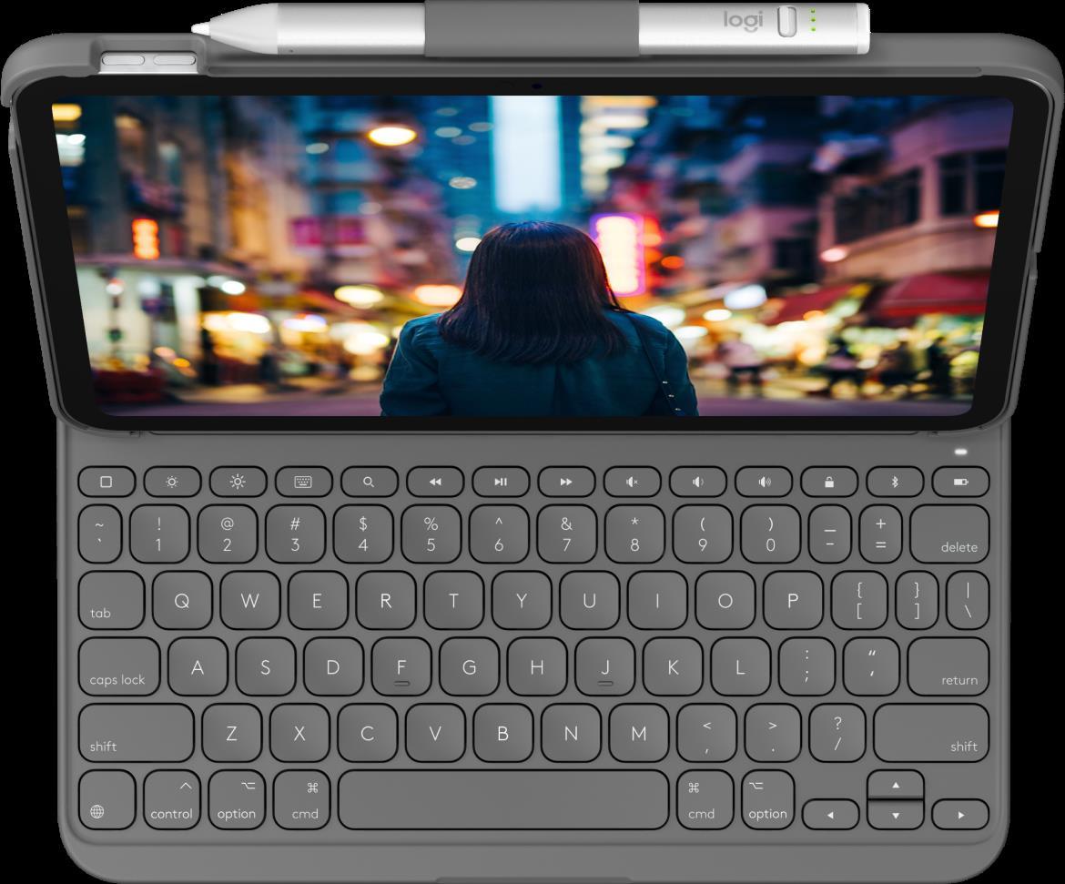 | Produktbeschreibung | Logitech Slim Folio - Tastatur und Foliohülle - QWERTY - US International - Oxford Gray |