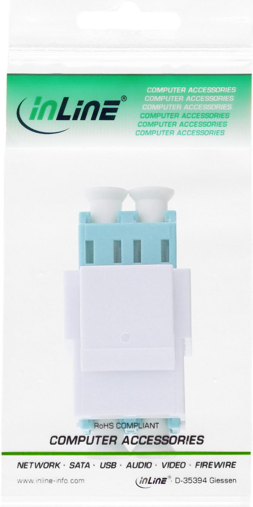 Die InLine® LWL Keystone Snap-in Kupplung dient zum Verbinden von 2 LWL-Kabeln mit LC-Stecker. Die Snap-in-Bauform (auch Keystone genannt) ermöglicht den Einbau in entsprechende Patchfelder, Wanddosen, Bodentank-Steckdosen, etc.• LWL Keystone Snap-in Kupplung weiß, Innengehäuse türkis• Duplex LC Buchse beidseitig• Für multimode LWL-Fasern• Mit Keramik-Hülse