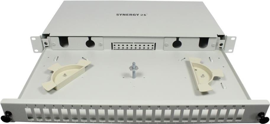 LWL-Patchpanel für 24xSC-Duplex/LC-Quad-Buchsen, 48,30cm (19")/1HE, ohne SC/LC-Kupplungen, Lichtgrau, Synergy 21 (S216370V2)
