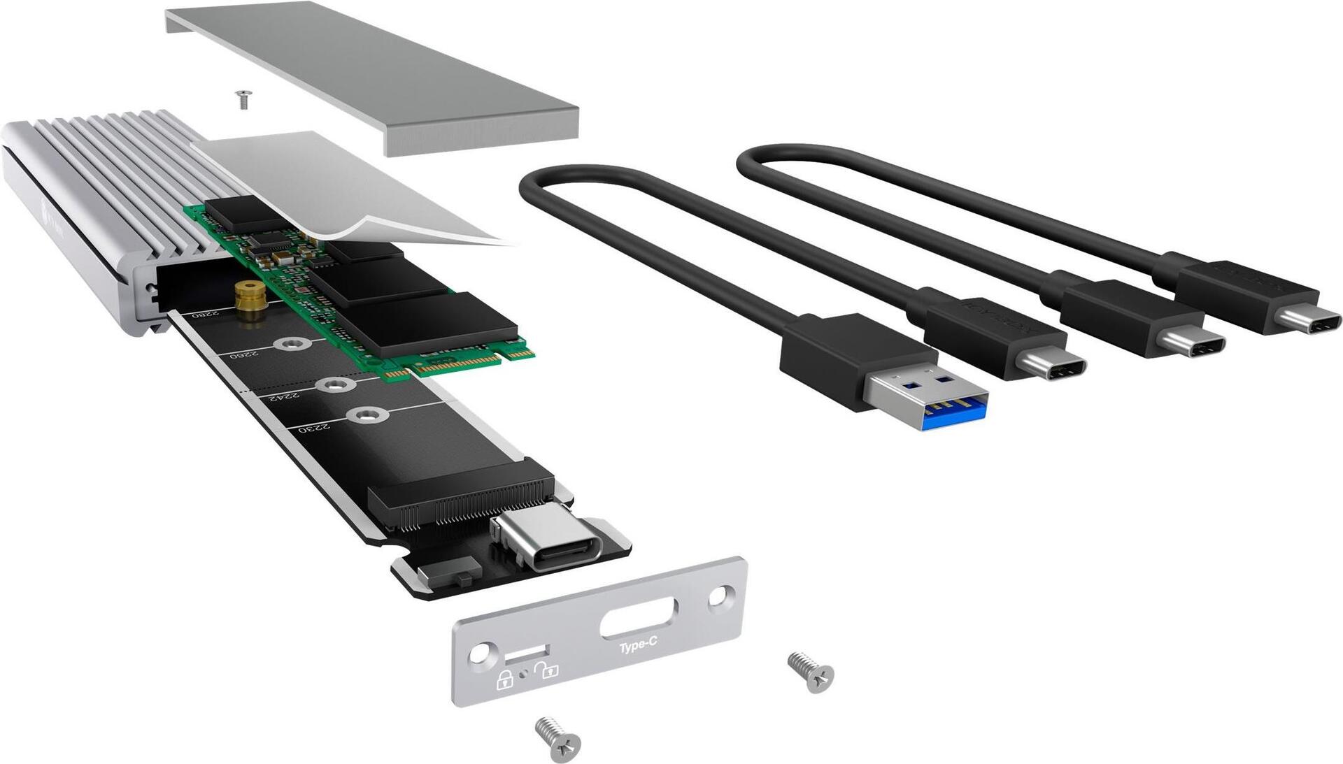 Mit dem externen USB 3.1 Typ-C Gehäuse IB-1817Ma-C31 können Sie eine NVMe SSD schnell und einfach mitnehmen. Es erlaubt Zugriff auf M.2 Datenträger von bis zu 2 TB, egal mit welchem Host Sie es verbinden.