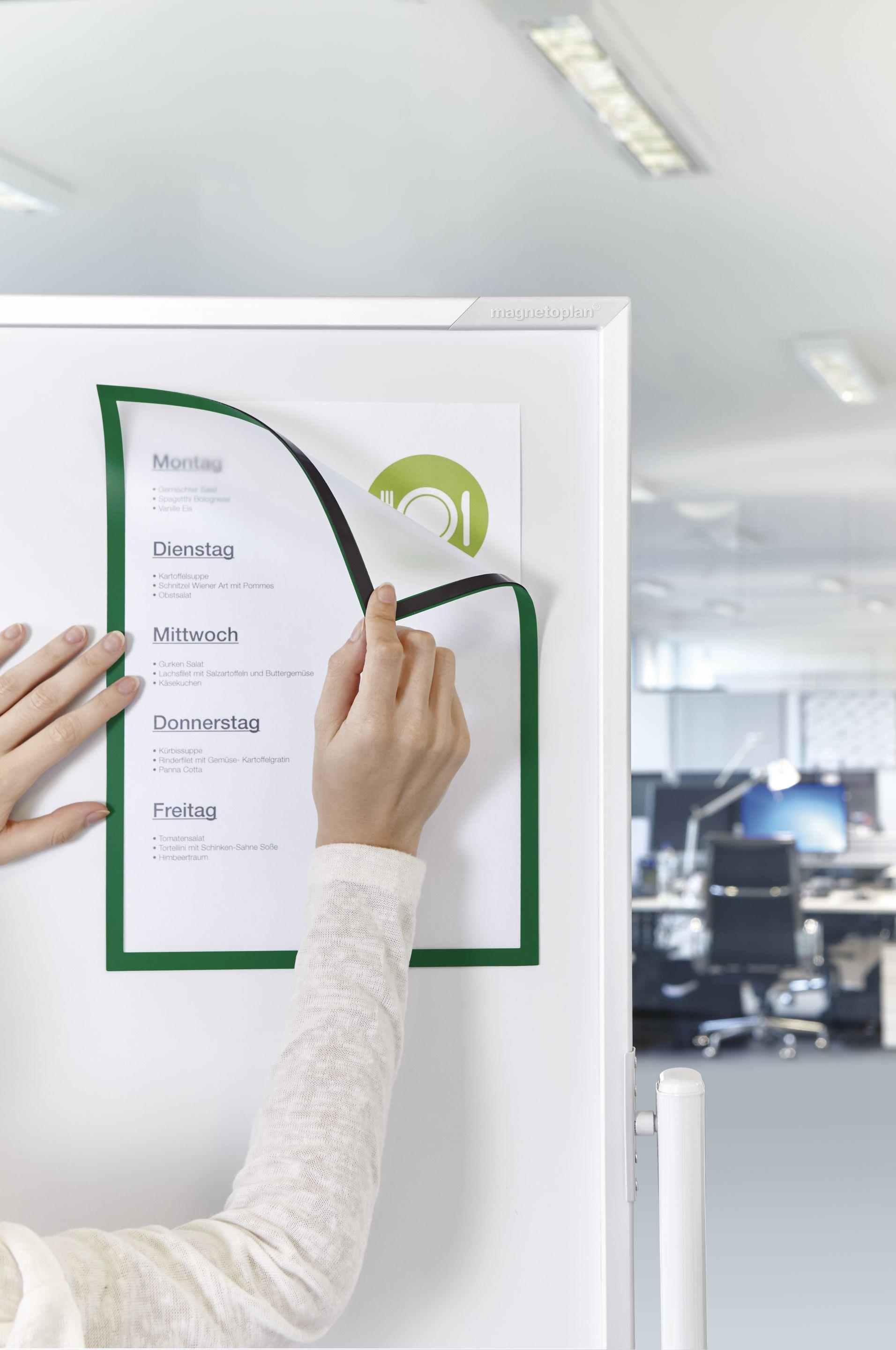 Farbiger Magnetrahmen zum Aushängen betrieblicher Informationen: Für Büro, Lager + Fertigung, ideal auch für TQM-Infotafeln.