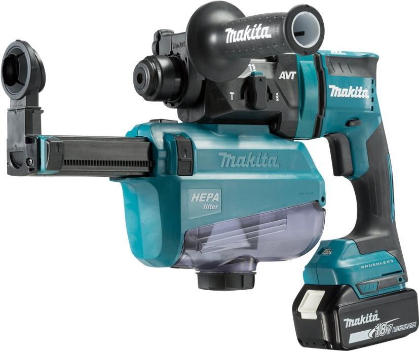 Kleiner Akku-Bohrhammer mit Absaugung. Ideal bei Montagearbeiten, bei denen es auf eine saubere Arbeitsumgebung ankommt. Bei dieser Maschine ist eine effektive Staubabsaugung integriert. Das bedeutet, dass weder Kabel und noch Schlauch mitgeführt werden müssen. Gerade bei Über-Kopf-Arbeiten ein entscheidender Vorteil hinsichtlich Gewicht und Handling. Zum Schutz des Anwenders wurde in dieser Maschine eine Anti-Vibrations-Technololgie eingesetzt, die einen Großteil der Vibrationen absorbiert.