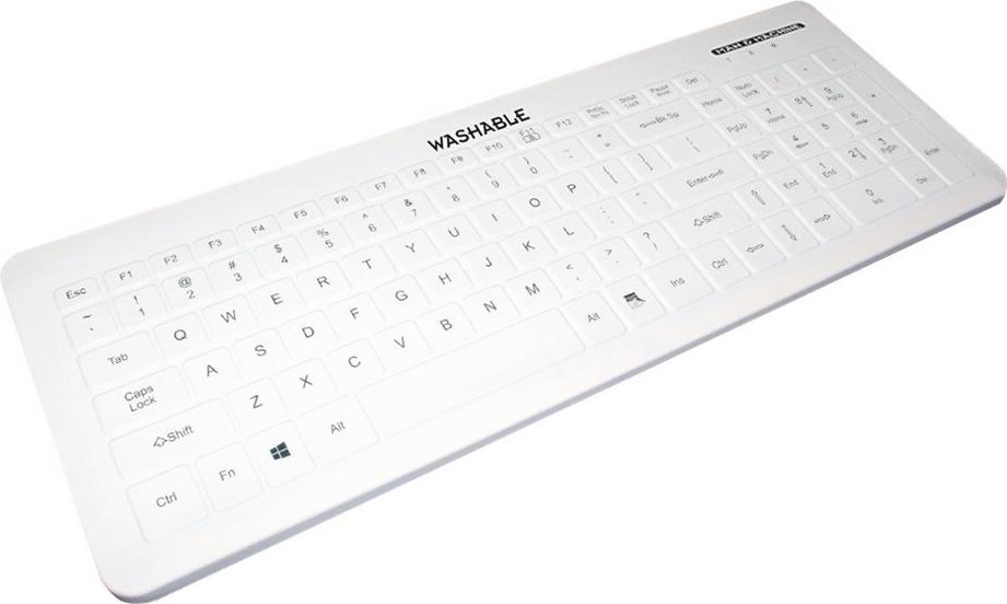 Entdecken Sie diese großzügig bemessene Hygienetastatur für das medizinische Umfeld. Die Elektronik ist von innen versiegelt, und dadurch ist die Tastatur abwaschbar. Der dazugehörende Silikonschutzbezug schützt die Tastatur vor Keimen zwischen den Tasten. Das leichte Tastenprofil der Schutzhülle erleichtert die Fingerpositionierung und das Blindschreiben. Man kann die Tastatur eintauchen, abspülen, absprühen und mit einem Desinfektionsmittel abwischen. Der Silikonüberzug ist sogar sterilisierbar. Die Tastatur kann gesperrt werden. Das Kabel hat eine doppelte Kabeldruckverringerung, ist in 4 Richtungen zu stellen und einfach zu entkuppeln. Verschmutzungen sind auf dieser hygienischen weißen Tastatur schnell sichtbar. Profitieren Sie von der einzigartigen Kombination eines hervorragenden Tastenanschlags mit einer leicht desinfizierbaren Oberfläche.