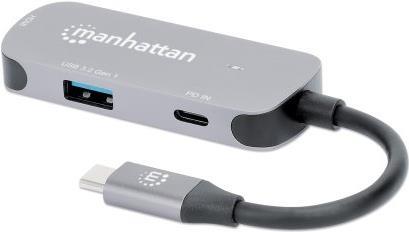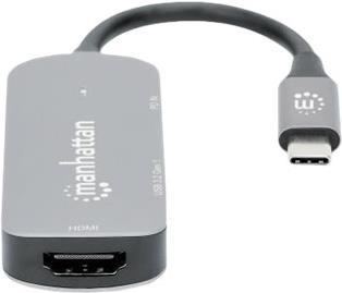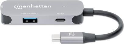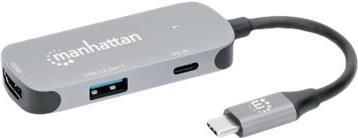 Der Manhattan USB-C Dock/Hub ist eine vielseitige Anschlusserweiterungslösung, die die Bedürfnisse von Profis und Technikbegeisterten gleichermaßen erfüllt. Mit den integrierten HDMI-, USB-A- und USB-C-Anschlüssen können Benutzer eine Vielzahl von Geräten gleichzeitig anschließen, von Monitoren und Projektoren bis hin zu Tastaturen und externen Speichermedien, ohne Einbußen bei der Leistung oder Geschwindigkeit. Das Dock unterstützt eine hochauflösende Ausgabe von bis zu 3840 x 2160, was es ideal für hochauflösende Präsentationen und Medien macht. Darüber hinaus bietet es eine 100-Watt-Stromversorgung, damit Ihre Geräte immer aufgeladen und einsatzbereit sind, sowie ein Aluminiumgehäuse, das für Langlebigkeit sorgt und Ihrem Arbeitsbereich einen eleganten Touch verleiht. Ob bei der Arbeit oder in der Freizeit, diese Dockingstation erfüllt Ihre Anforderungen an die Konnektivität mit Leichtigkeit.