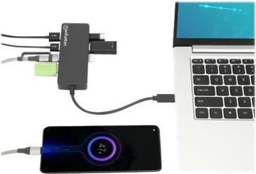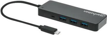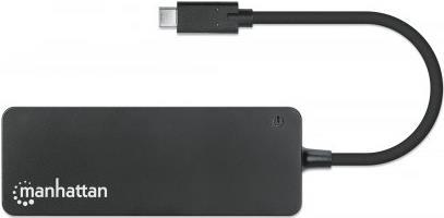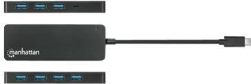 Der Manhattan 7-Port USB 3.2 Gen 1 Type-C Hub verwandelt einen der USB-C-Anschlüsse Ihres Geräts in sieben USB-A-Anschlüsse, sodass Sie problemlos eine Tastatur, eine Maus, ein Flash-Laufwerk und mehr anschließen können. Geräte, die der USB 3.2 Gen 1-Spezifikation (früher bekannt als USB 3.0) entsprechen, können Übertragungsgeschwindigkeiten von bis zu 5 Gbit/s für externe Speicher, Druckvorgänge und mehr erreichen. Die SuperSpeed-Anschlüsse des Hubs sind abwärtskompatibel, sodass auch ältere USB-Versionen 2.0 oder sogar 1.1 verwendet werden können. Außerdem können Sie Ihr Smartphone oder Tablet aufladen, denn der Hub liefert bis zu 5 V/0,9 A Strom.