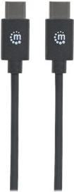 Manhattan USB-C to USB-C Cable, 50cm, Male to Male, Black, 480 Mbps (USB 2.0), Hi-Speed USB, Lifetime Warranty, Polybag - USB-Kabel - 24 pin USB-C (M) zu 24 pin USB-C (M) - USB 2.0 - 3 A - 50 cm - geformt - Schwarz (354868)