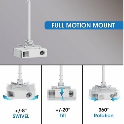 Der Manhattan von IC Intracom bietet ein hochbelastbares, höhenverstellbares Befestigungsset, das speziell für Projektoren entwickelt wurde. Diese robuste Deckenhalterung aus kaltgewalztem Stahl gewährleistet Stabilität und Zuverlässigkeit für verschiedene Anwendungen. Die vielseitige Konfiguration ermöglicht einen Neigungsbereich von -20° bis 20° und eine vollständige Drehung um 360°, sodass der Projektor ganz einfach in den gewünschten Winkel gebracht werden kann. Dank der integrierten Kabelführung bleiben die Kabel ordentlich verstaut und sorgen so für ein aufgeräumtes Erscheinungsbild. Die pulverbeschichtete Oberfläche erhöht die Langlebigkeit und sorgt für ein elegantes, professionelles Aussehen, das sich nahtlos in jede Umgebung einfügt.
