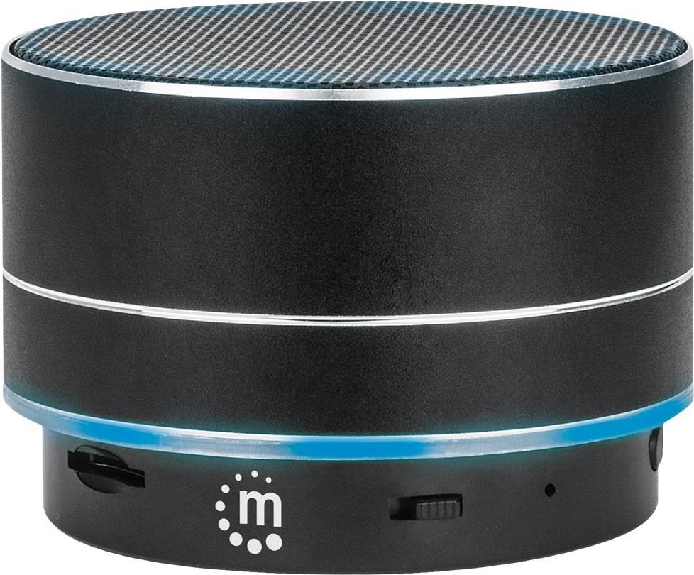 | Produktbeschreibung | Manhattan Metallic Bluetooth Speaker (Clearance Pricing), Microphone, Splashproof, Decent Sound Output (3W), 5 hour Playback time, Integrated Controls, Range 10m, microSD card reader, Aux 3.5mm, USB-A charging cable incl, Black, Bluetooth 5.0, 3 Years Warranty - Lautsprecher - tragbar - kabellos |