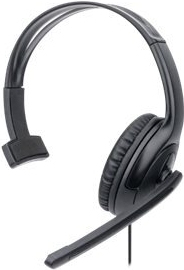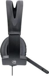 MANHATTAN Mono USB-Headset Ohraufliegendes Design (On-Ear), Ohrmuschel einseitig, kabelgebunden, USB-A-Stecker, integrierte Lautstärkeregelung, verstellbares Mikrofon, schwarz (180504)