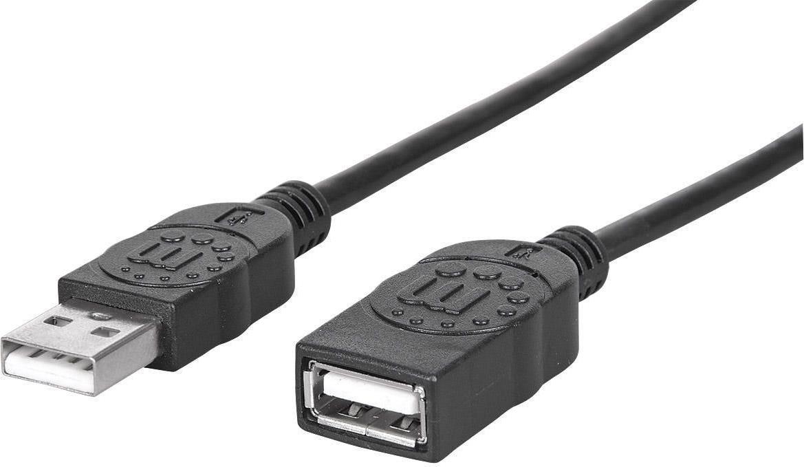MANHATTAN USB 2.0 Extension Cable, Type-A Male to Type-A Female, Black, 1 m (3 ft.) (308519)