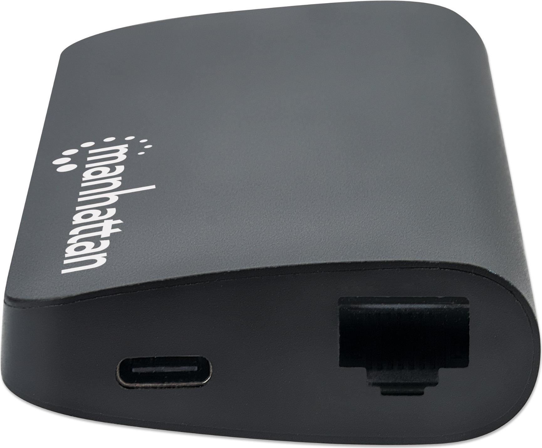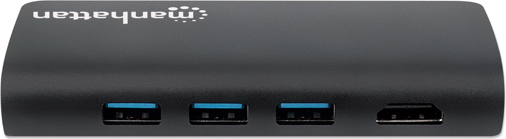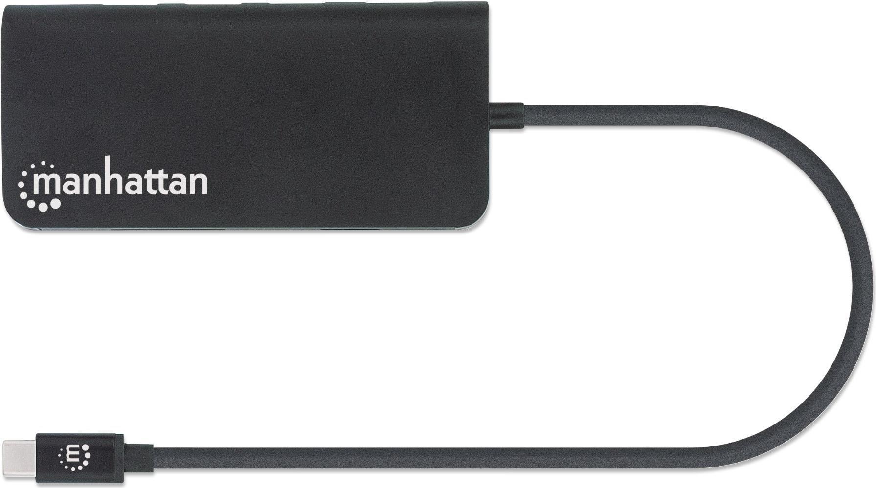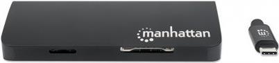 | Produktbeschreibung | Manhattan USB-C 5-Port Hub/Dock/Converter, USB-C to USB-C (including Power Delivery), 3x USB-A and Gigabit RJ45 Ports with Card Reader, Male to Females, 5 Gbps (USB 3.2 Gen1 aka USB 3.0), 1x Ethernet 10/100/1000 Mbps network, SD/Micro SD, Cable 30cm, Aluminium - Dockingstation - HDMI |