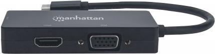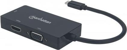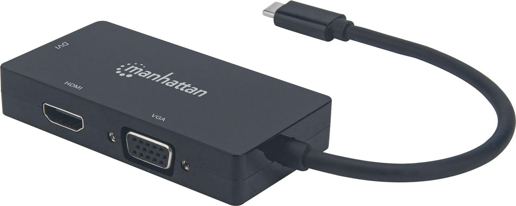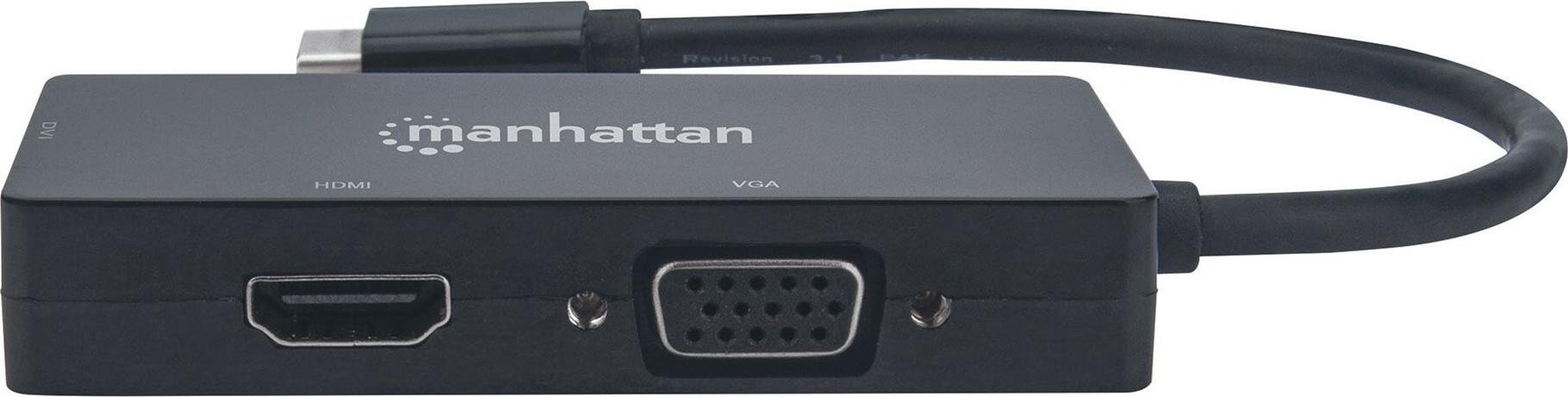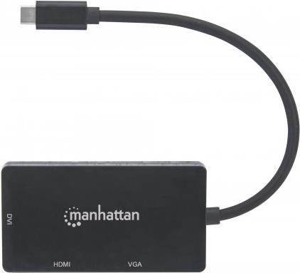 MANHATTAN USB-C 3-in-1 Multiport A/V-Konverter USB Typ C-Stecker auf DVI-, HDMI- oder VGA-Buchse, 4K@30Hz auf HDMI-Port, 1080p auf VGA- und DVI-Ports, schwarz (152983)