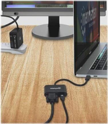 | Produktbeschreibung | Manhattan USB-C to USB-C (with Power Delivery) and VGA Converter Cable, 1080p, 5 Gbps (USB 3.2 Gen 1), Thunderbolt 3 compatible, 19.5cm, Male to Female, Black, Box - Display-Adapter - 19.5 cm |