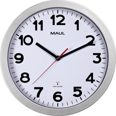 MAUL Wanduhr/Funkuhr MAULstep, Durchmesser: 300 mm, silber automatische Synchronisation, Batteriebetrieb, inkl. 1x - 1 Stück (9053095)