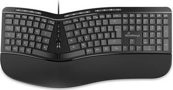 Die MediaRange MROS120-Tastatur vereint Funktionalität und Komfort mit ihrem ergonomischen Design und ihrem Layout in voller Größe. Dank ihrer geteilten Struktur fördert sie eine bessere Körperhaltung beim Tippen und reduziert die Belastung bei längerer Nutzung. Das 1,8 m lange Kabel bietet ausreichend Länge für eine vielseitige Gestaltung des Arbeitsbereichs. Ausgestattet mit Multimedia-Tasten steigert diese Tastatur die Produktivität, da sie einen schnellen Zugriff auf wichtige Funktionen wie Wiedergabe/Pause, Lautstärkeregelung und Browser-Shortcuts ermöglicht. Darüber hinaus sorgt ihre Spritzwasserfestigkeit für Langlebigkeit und Schutz vor versehentlichem Verschütten von Flüssigkeiten und macht sie zu einer zuverlässigen Wahl für alltägliche Aufgaben. Die Kompatibilität mit Mac-Systemen erweitert die Attraktivität der MROS120 zusätzlich, während das QWERTZ-Layout speziell auf deutsche und österreichische Benutzer zugeschnitten ist. Mit 124 Tasten, einschließlich eines Ziffernblocks und eines integrierten Scrollrads, ist diese Tastatur für eine einfache Navigation und effiziente Dateneingabe ausgelegt. Die Tastatur ist auf Langlebigkeit ausgelegt und hat eine Lebensdauer von bis zu 10 Millionen Klicks, was eine langfristige Zuverlässigkeit für jede Arbeitsumgebung gewährleistet.
