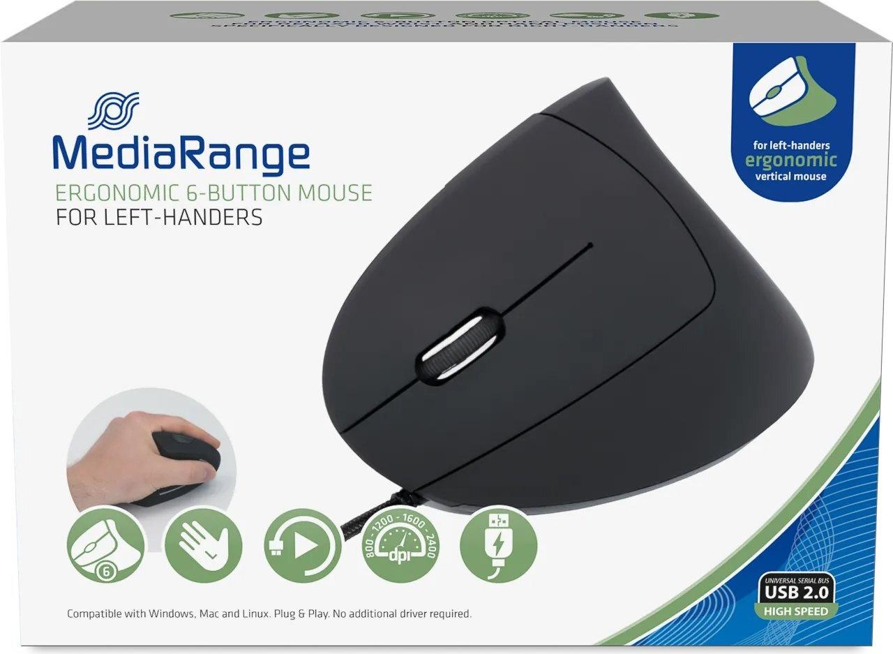 MediaRange muis USB 2.0 Vertical Linkshänder - zwart Maus (MROS231)
