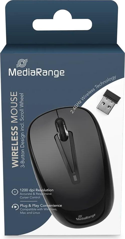 MediaRange MROS216 - Maus - optisch - 3 Tasten - kabellos - 2,4 GHz - kabelloser Empfänger (USB) - Schwarz (MROS216)