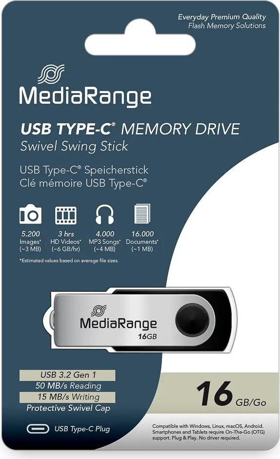 • MEDIARANGE USB-Stick USB 3.2 Gen1 USB-C 16GB - 16 GB (MR1951)