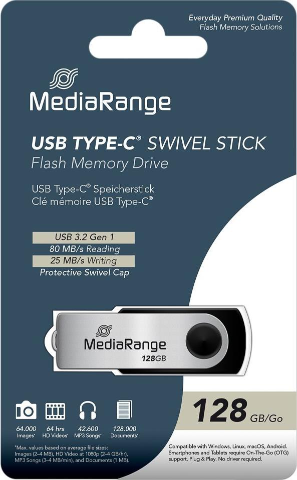 • MEDIARANGE USB-Stick USB 3.2 Gen1 USB-C 128GB - 128 GB (MR1954)