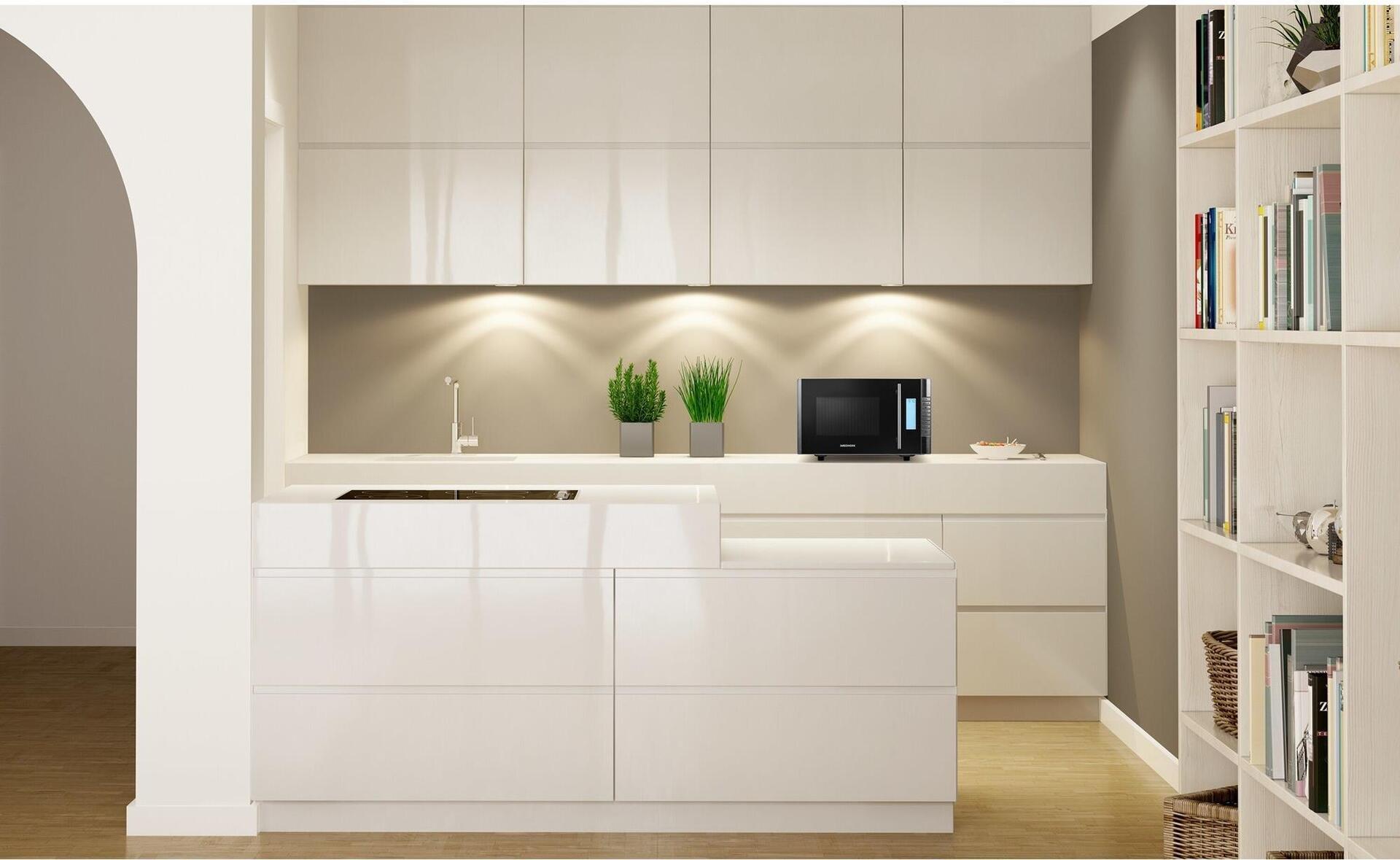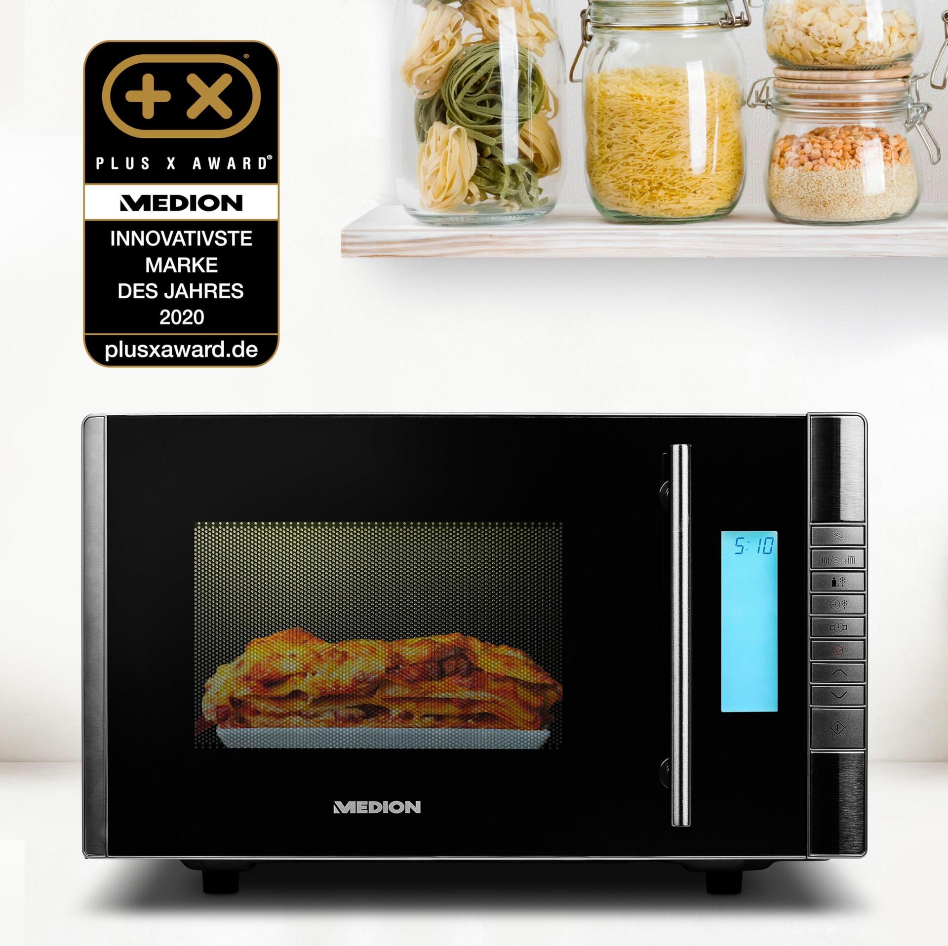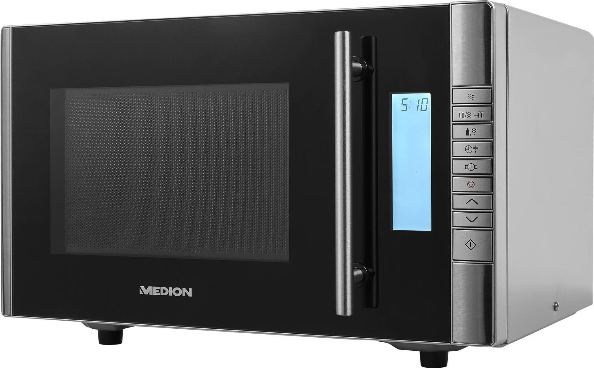 Herzhafte Aufläufe, vegetarische Gemüsepfanne oder eine Tiefkühlpizza, wenn es mal schnell gehen muss: In dieser MEDION Mikrowelle mit Grill gelingen Dir verschiedenste kulinarische Genüsse im Handumdrehen. Durch die Zubereitung mit nur einem Gerät genießt Du maximalen Komfort und sparst obendrein Zeit sowohl beim Kochen als auch beim Putzen.