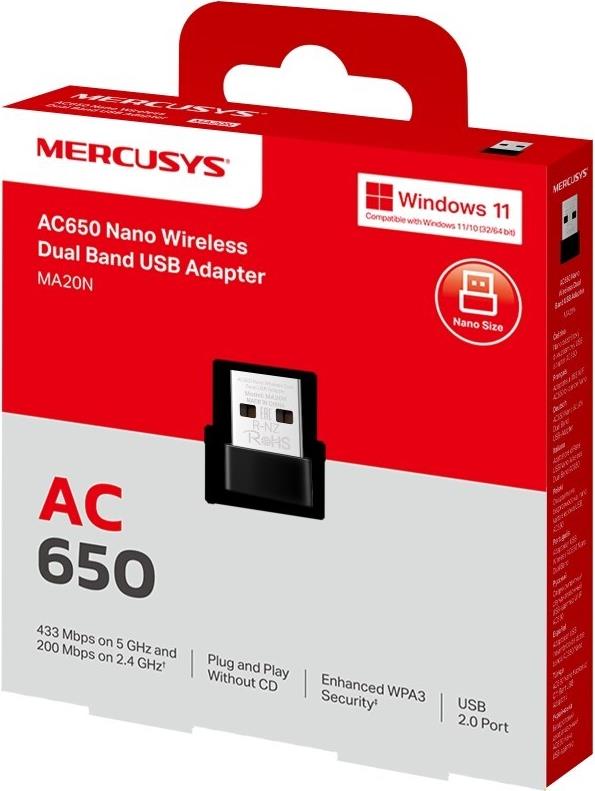 • Mercusys MA20N AC650 Nano Wi-Fi USB Adapter (MA20N)
