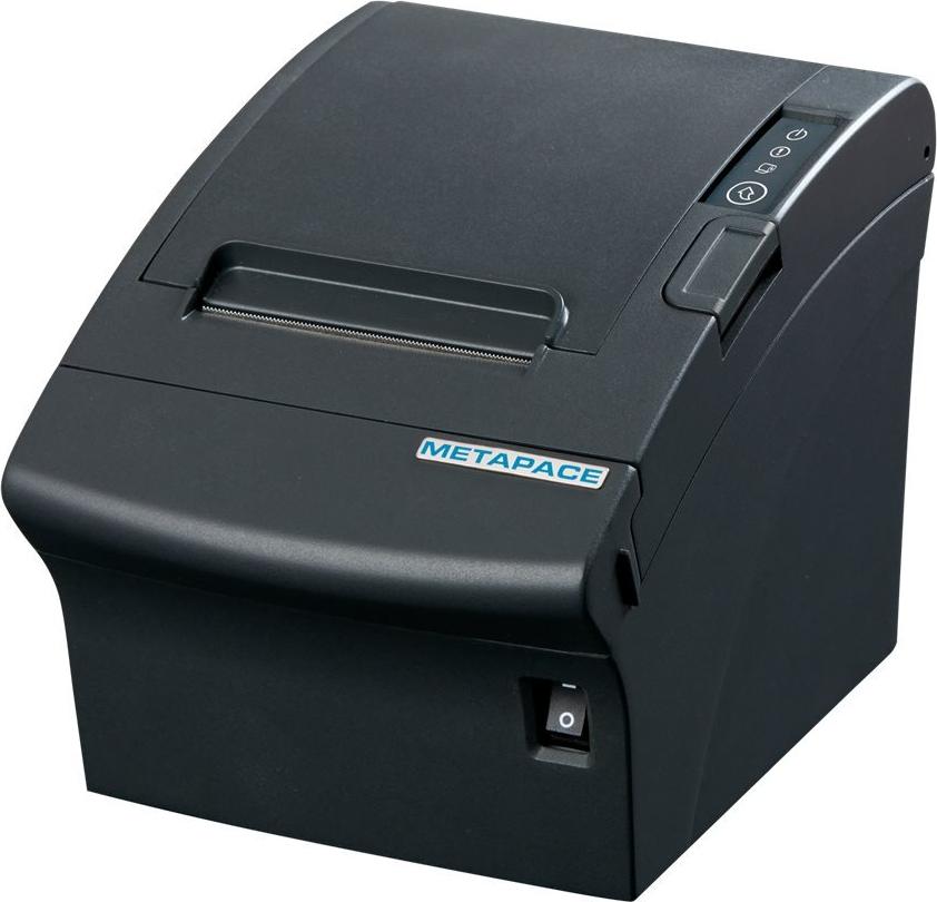 Metapace T-3III, Cutter, USB, Ethernet, Kit (USB), schwarz Bondrucker, Thermodirekt, Auflösung: 7 Punkte/mm (180 dpi), Medienbreite (max): 80 mm, Druckbreite (max.): 72 mm, Geschwindigkeit (max.): 300 mm/Sek, Cutter, optischer Sensor, Anschluß: USB, Ethernet, RAM: 64MB, Flash: 64 MB, inkl.: Kabel (USB), Netzteil, Netzkabel (EU), Reinigungsstift, Bonrolle, Buzzer, Spritzwasser Abdeckung, QSG, Farbe: schwarz (META-T3IIIBUES)