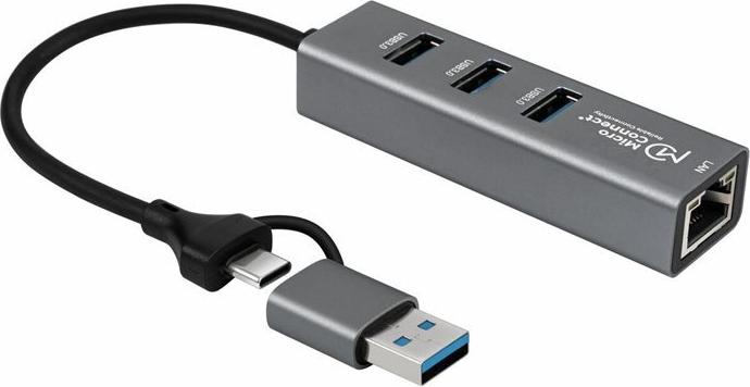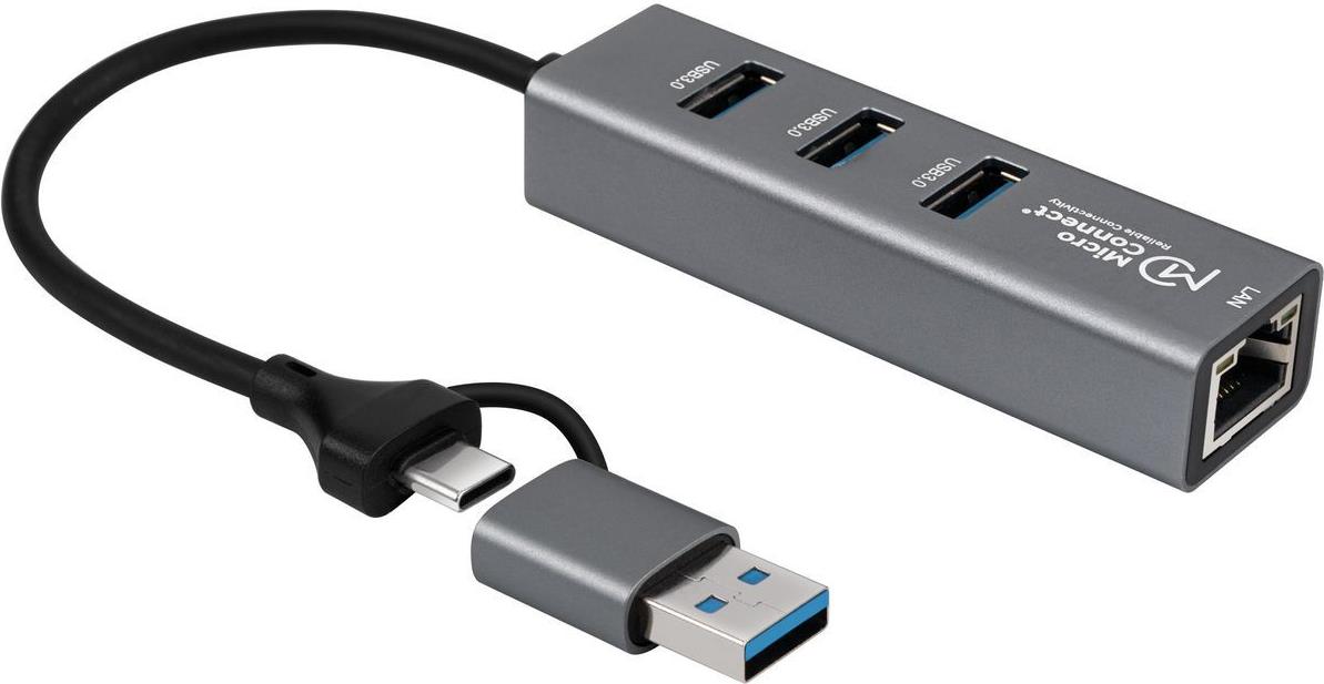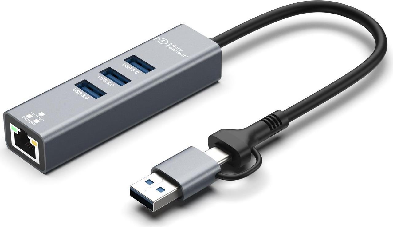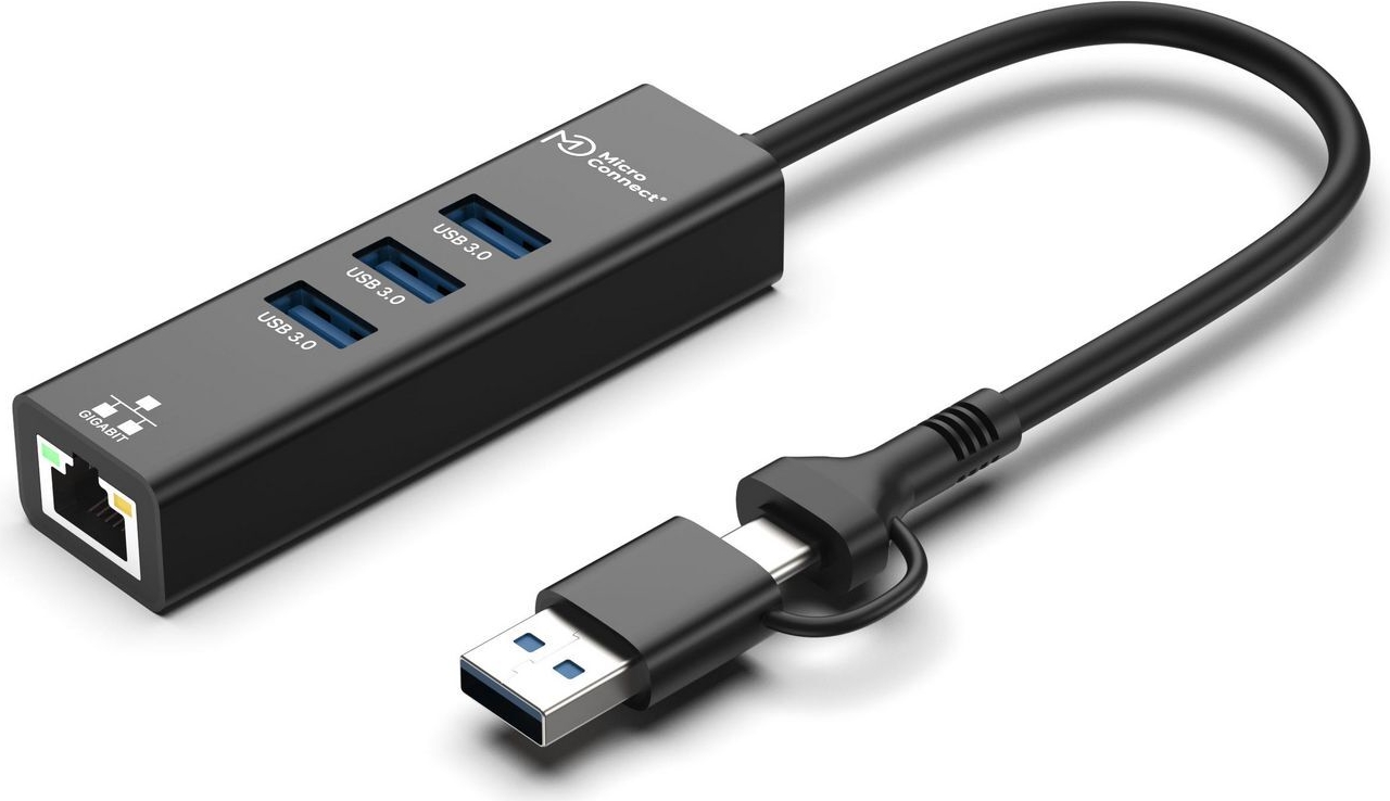 Der MicroConnect USB 3.2 Gen 1 Hub ist die ideale Erweiterung für jeden Arbeitsplatz. Bis zu 3 USB-Geräte können gleichzeitig angeschlossen und genutzt werden, zusammen mit einer 1Gbit Netzwerk-Ethernet-Verbindung, was die Nutzung mehrerer Eingabegeräte oder tragbarer Speichermedien erleichtert. Dank der USB 3.2 Gen 1 Technologie erreichen Datenübertragungen Geschwindigkeiten von bis zu 5 Gbps und gewährleisten den schnellsten Datenaustausch. Der 4-Port-Hub ist der ideale Begleiter auf Reisen, aber auch im Zuhause und Büro unverzichtbar.\\ Übersicht der USB-Generationen \Die Benennungen unserer USB-Kabel wurden aktualisiert, um den neuesten USB-Standards zu entsprechen.\\• USB 2.0 unterstützt Übertragungsgeschwindigkeiten von bis zu 480 Mbps.\• USB 3.0 und USB 3.1 Gen 1 werden jetzt als USB 3.2 Gen 1 bezeichnet und bieten Datenübertragungsraten von bis zu 5 Gbps.\• USB 3.1 und USB 3.1 Gen 2 wurden in USB 3.2 Gen 2 umbenannt, mit Übertragungsraten von bis zu 10 Gbps.\• Der neue USB 3.2 Gen 2x2 Standard unterstützt Übertragungsgeschwindigkeiten von bis zu 20 Gbps.\• USB 4 bietet noch höhere Geschwindigkeiten, mit Raten von bis zu 40 Gbps, sowie eine bessere Kompatibilität mit Thunderbolt 3.\\USB 2.0, USB 3.0, USB 3.1, USB 3.2 und USB 4 Kabel und Geräte sind alle miteinander kompatibel, wenn entweder eine USB Type-A oder USB Type-C Host-Schnittstelle verwendet wird.Hauptmerkmale