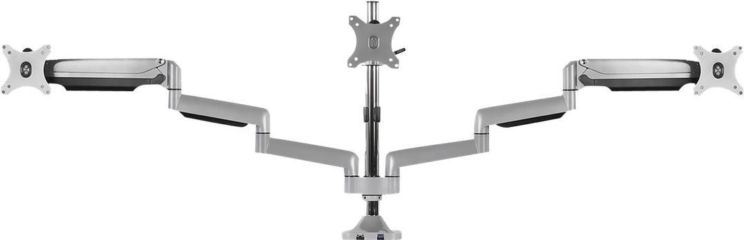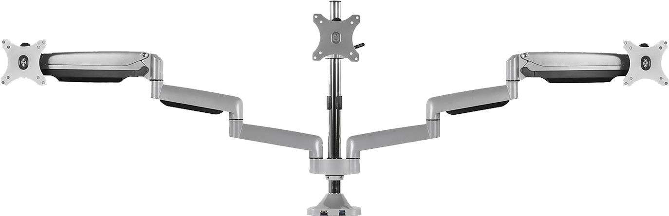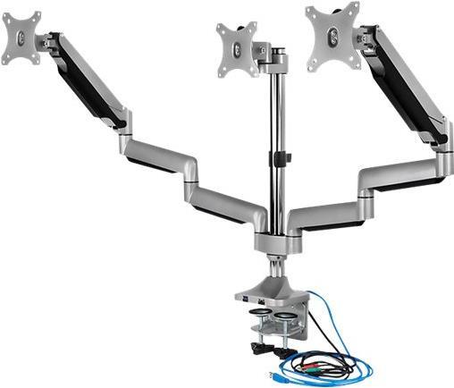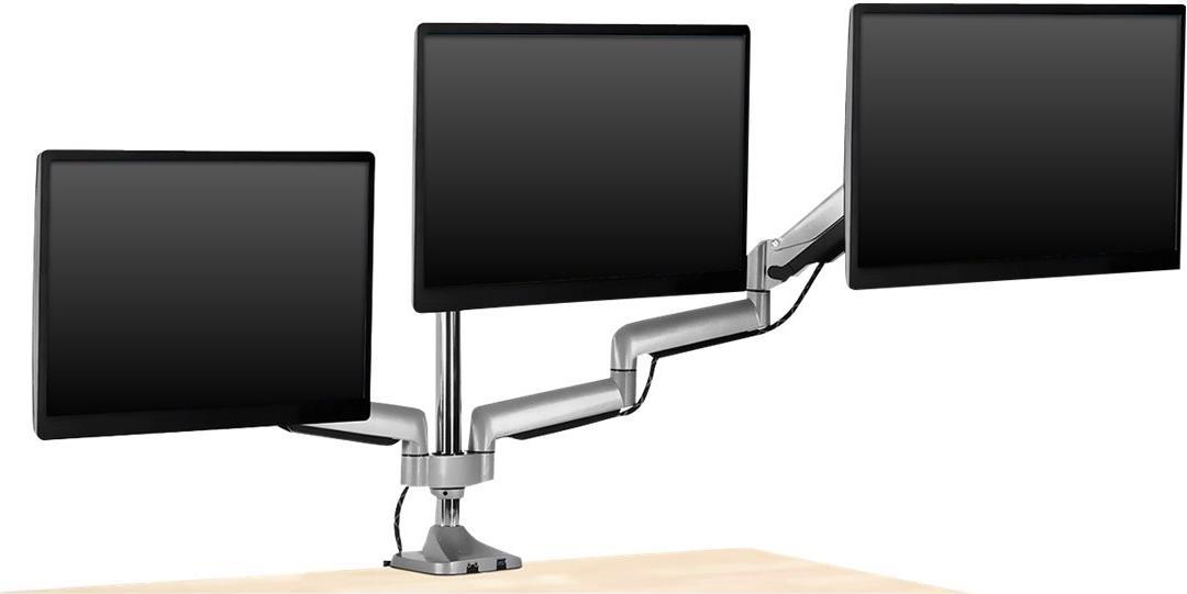 Der Dreifach-Monitorständer schafft wertvollen Arbeitsplatz auf Ihrem Schreibtisch. Diese, aus hochwertigem Aluminium gefertigte, Monitorhalterung unterstützt drei Bildschirme mit einer Größe von jeweils bis zu 32 Zoll. Die IB-MS505-TI bietet eine Vielzahl von Funktionen, darunter eine einfache Höhenverstellung, verschiedene Neigungswinkel für die Bildschirme und viele verstellbare Gelenke. Diese lassen sich festziehen oder lösen, je nach den Anforderungen der Einsatzsituation. Die Monitore können in Hoch- und Querformat gedreht werden.