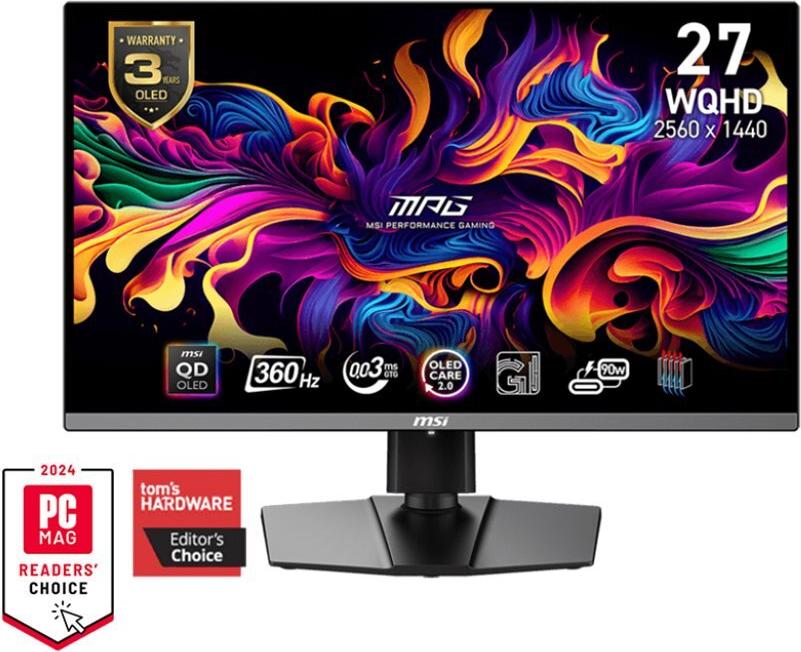 MSI MPG 271QRXDE QD-OLED Gaming-Monitor 67.3 cm (26.5 Zoll), schwarz, WQHD, QD-OLED, Adaptive-Sync, USB-C, 360Hz Panel (9S6-3CD79A-052)
