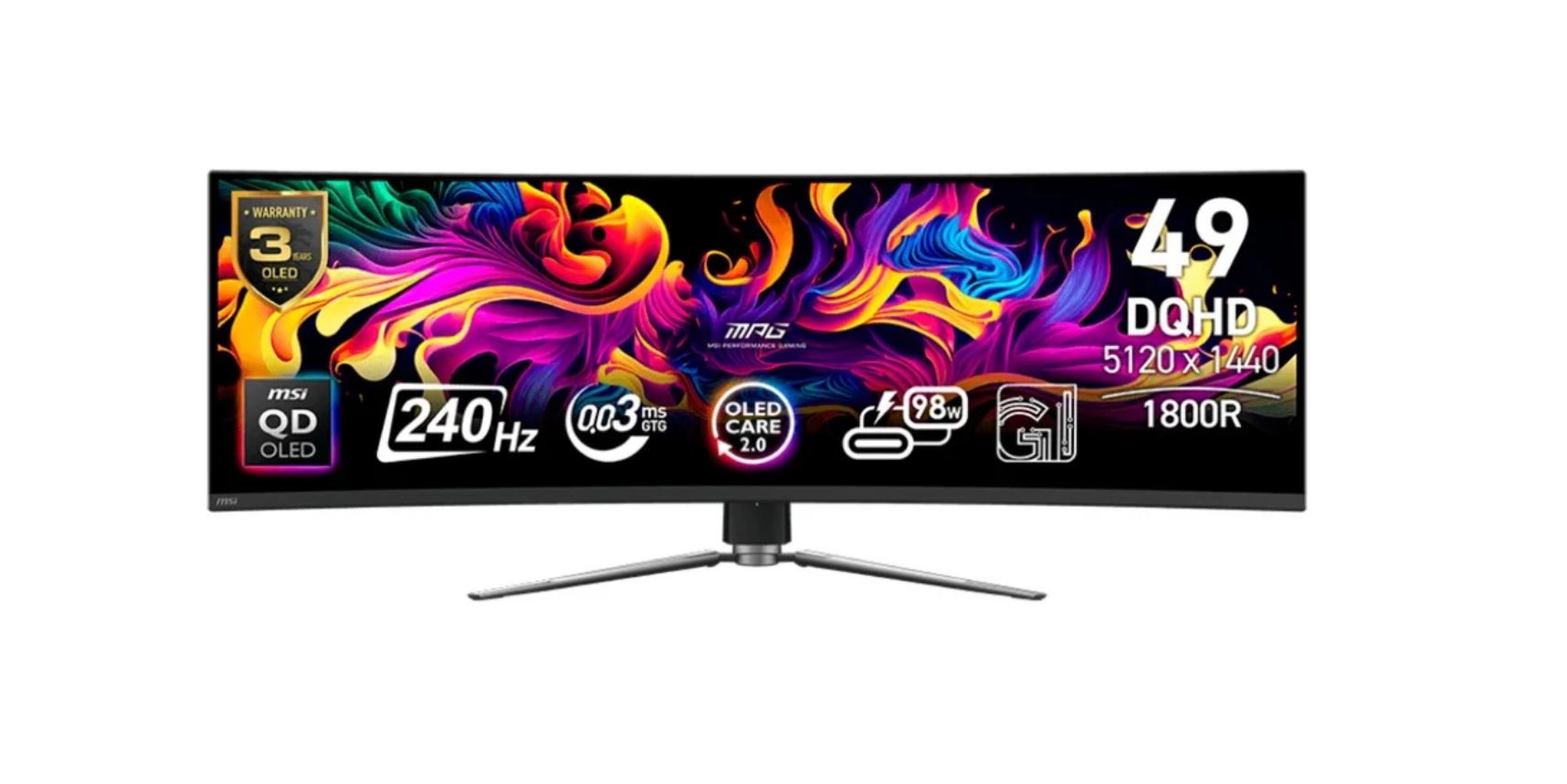 MSI MPG 491CQPXDE QD-OLED, Gaming-Monitor - (124.5 cm (49 Zoll), schwarz, DQHD, Curved, USB-Hub, USB-C, 240Hz Panel) [Energieklasse G] (9S6-3FA84T-020)