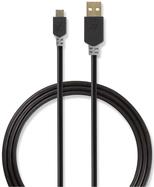 Nedis CCBW60500AT20. Kabellänge: 2 m, Anschluss 1: USB A, Anschluss 2: Micro-USB B, USB-Version: USB 2.0, Maximale Datenübertragungsrate: 480 Mbit/s, Beschichtung Steckerkontakte: Gold, Produktfarbe: Schwarz (CCBW60500AT20)