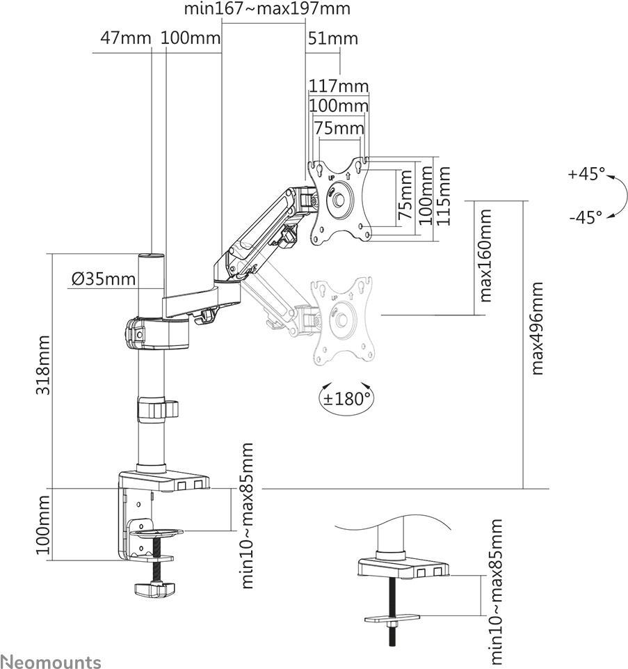 • Neomounts DS70-750BL1 1fach Monitor-Tischhalterung 43,2 cm (17) - 68,6 cm (27) Schwarz Neigbar+Schwenkbar, Höhenverstellbar, Rotierbar