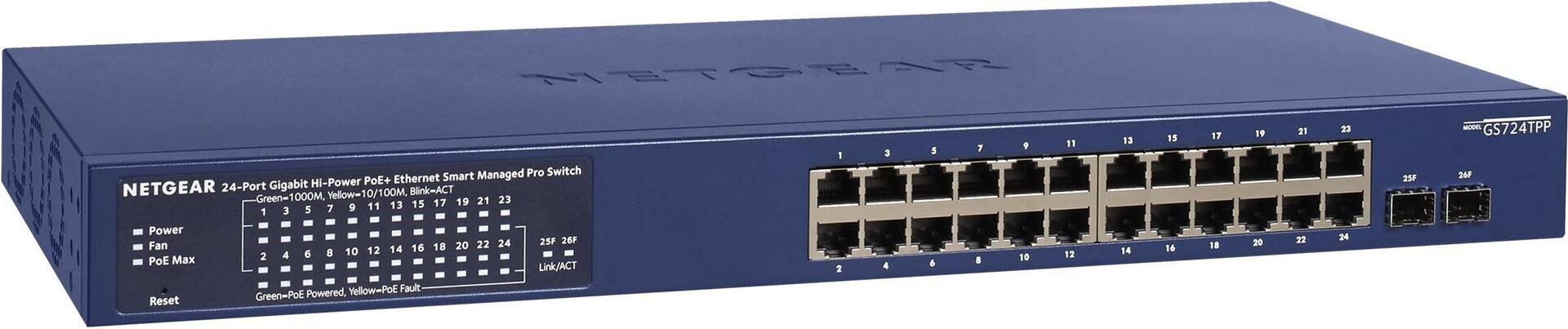 | Produktbeschreibung | NETGEAR Smart GS724TPP - Switch - 24 Anschlüsse - Smart - an Rack montierbar |